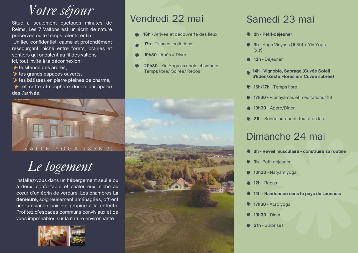 Dimanche 24 mai : Natya Yoga, Yin Yoga, Randonnée dans le pays du Laonnois, Yin-Yang Yoga, soirée surprise...)